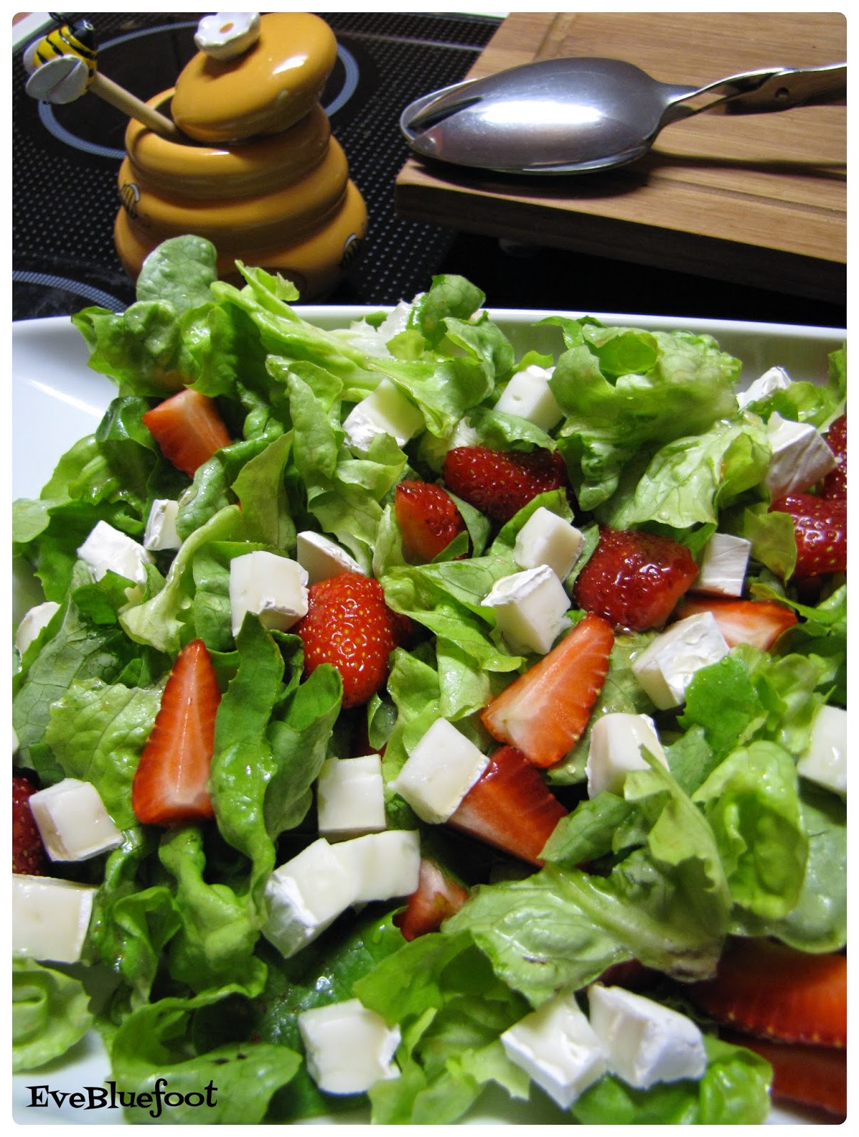 strawberries. Cut the lettuce leaves into small pieces and slice the