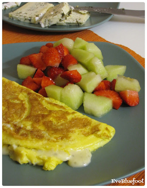lightly brown. Put some slices of Brie on one half of the omelet, run